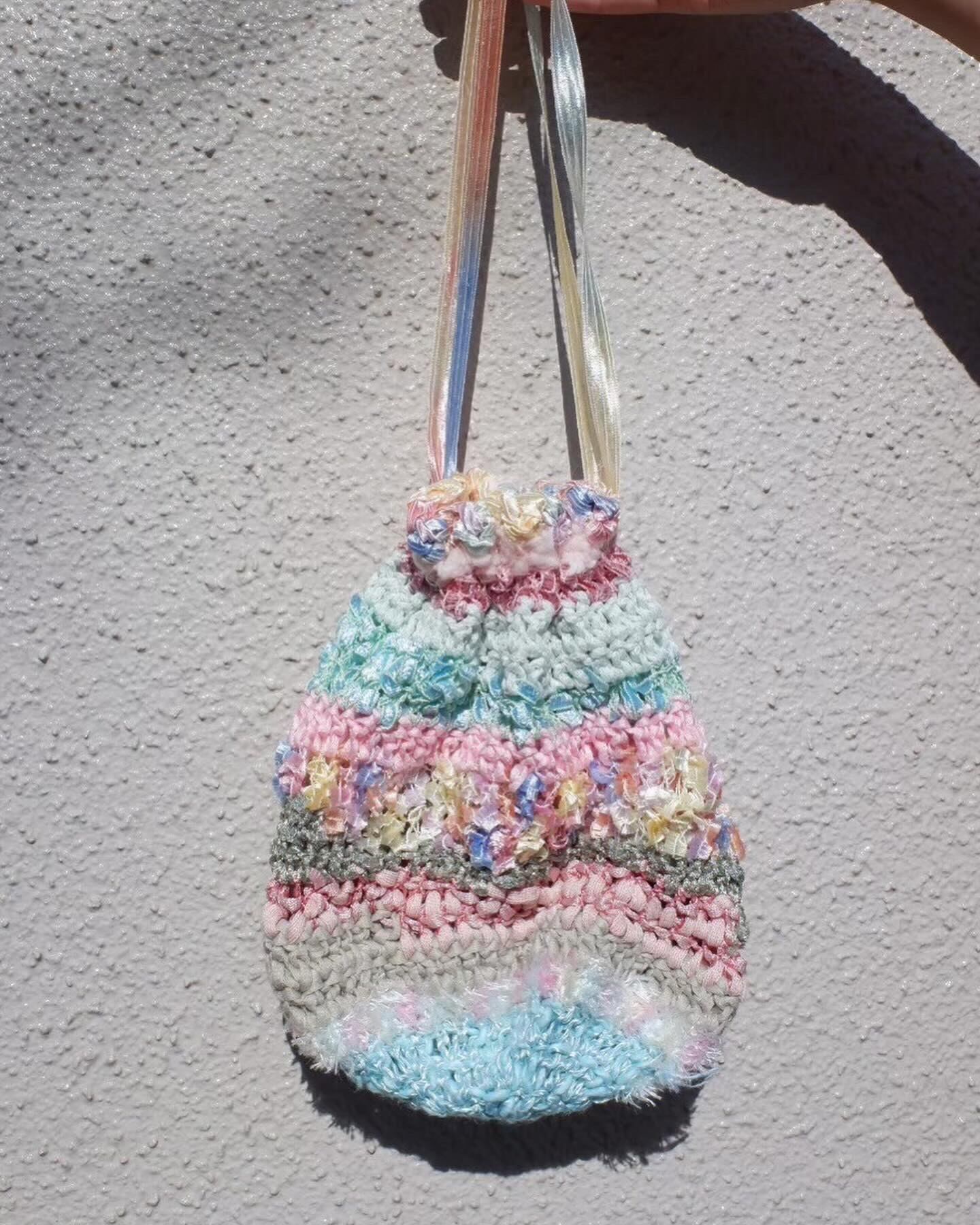 一目惚れした毛糸を使って巾着を編んでみました❤︎